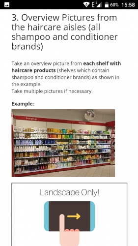 Все что нужно сделать, это сходить в ближайший супермаркет (Магнит, Перекресток, Лента, Карусель) и сфотографировать на смартфон полку с определенными товарами.