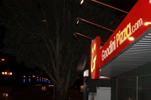 В виду крайне ограниченного бюджета, расходы на наружную рекламу были очень скромными. Ни каких светящихся букв и неоновой подсветки даже не планировалось.