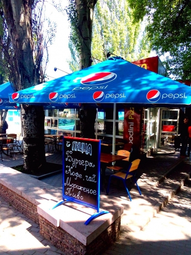 В итоге, мне удалось получить в аренду, новый одностворчатый холодильник для напитков в торговый зал, трех крановую разливную установку, два зонта 4х4 метра для летней площадки и шесть комплектов деревянной мебели под них.
