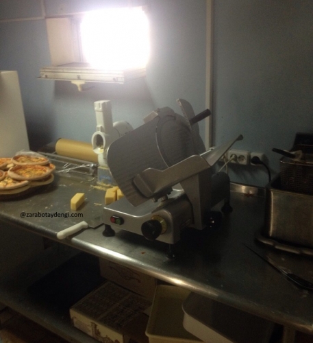 Данный агрегат используется для равномерной нарезки колбас и сыров, с возможностью регулирования толщины нарезаемых кусочков. Обычно толщина ломтиков составляет 2-3 мм.