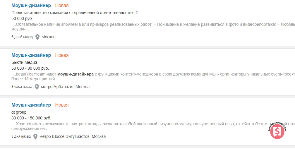 Согласно опросу 2019 года, в котором приняли участие 1300 активных моушн-дизайнеров, средняя зарплата в Motion Design составляет 62 000 $ в год, а средняя зарплата внештатных дизайнеров (фрилансеров) — 65 000 $ в год (5400$ в месяц).
