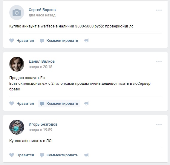 - Покупка аккаунтов на форумах, и перепродажа их другим игрокам