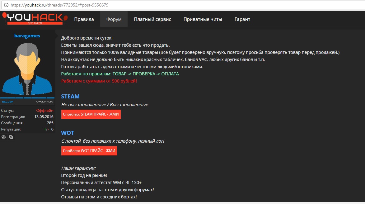 Одним из лучших форумов, где можно найти недорогие аккаунты — youhack.ru но так как здесь самые дешевые цены на продажу, то этот форум нужно использовать только для поиска поставщиков, но ни в коем случае не для продажи.