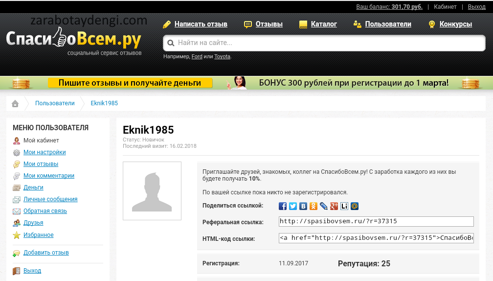 Сайт тоже напоминает социальную сеть. Единственное преимущество сайта выплата бонусов в размере 300 руб. за регистрацию на сайте.