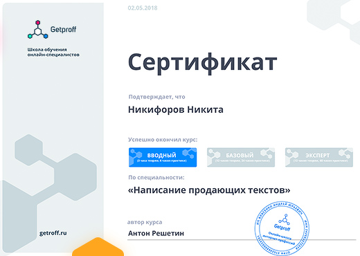 Профессионализм преподавателей не вызывает сомнений. Рекомендую данный курс как начинающим фрилансерам, так и уже работающим копирайтерам и редакторам, желающим выйти на новый уровень профессионального мастерства.