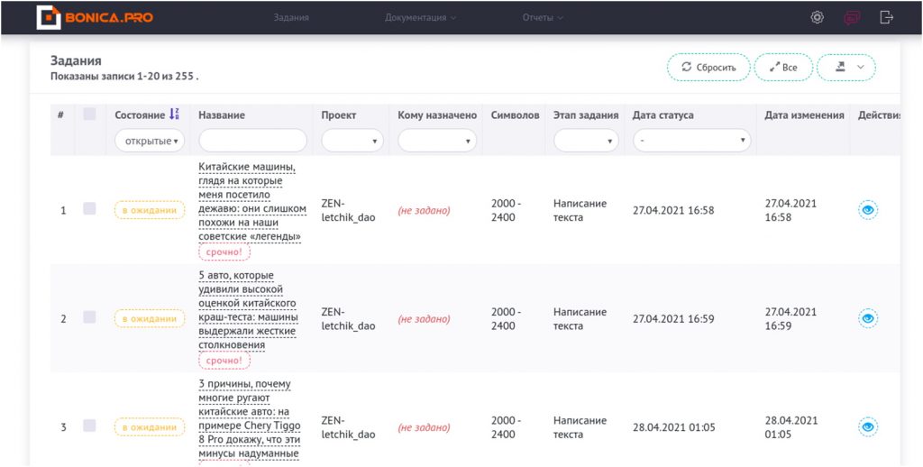 Также хочу сказать, что лично для меня в списке заданий иногда вообще не находится подходящих. Так можно просидеть пару дней, а потом сразу найти 2 или 3 подходящих задачи. Список обновляется каждый день. Если месяц не проявлять активность в системе, то ваш аккаунт могут заблокировать. Чтобы этого не произошло, советую время от времени заходить в Бонику. Задачи брать не обязательно.