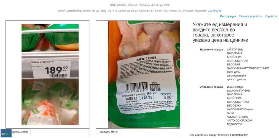 Здесь нужно определить есть ли описываемый товар на полке. Также требуется указать со сканера цена или нет. Если по каким-то причинам задание не может быть выполнено, например, на изображении не видно ценник и (или) надписи на упаковке товара, то жмите на соответствующую кнопку. Такое тоже бывает.